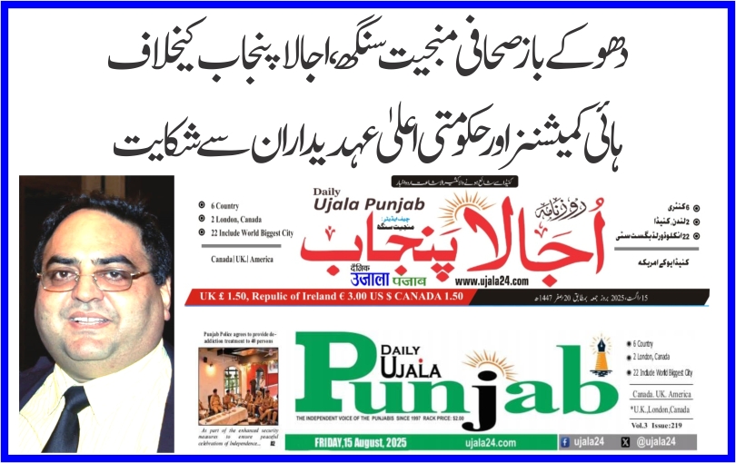 نئی دہلی20ستمبر ، (پریس ریلیز) صحافت کے نام پر فراڈ اور دھوکہ بازی کرنے والے نقلی صحافی منجیت سنگھ چیف ایڈیٹر اجالا پنجاب کے خلاف بھارت کے اعلی عہدیداران یعنی وزیراعظم جناب نریندر مودی ، وزیر داخلہ جناب امت شاہ ، وزیر برائے اطلاعات ونشریات کے جناب اشونی ویشنو ، وزیر برائے لیبر اینڈ امپارمنٹ جناب منسکھ منڈاویہ اور بھارت میں موجود کنیڈا ہائی کمیشن ، برٹش ہائی کمیشن ، ایمبسی یونائٹیڈ اسٹیٹس آف امریکہ سمیت اِن ممالک میں موجود بھارت کی ہائی کمیشنز میں شکایت درج کرا دی گئی ہے ۔ ان تمام شکایات کا ازالہ جلد ہونے کی امید ہے اور مستقبل میں ایسے فراڈ کو نیست و نابود کرنے کا یہ ٹھوس اقدام ہوگا ۔