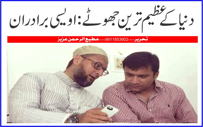 اکبرالدین اویسی کا "70 چھرا گھونپے اور 25-30 کلہاڑی کے وار”بڑے بھائی سے آگے چھوٹے بھائی اکبرالدین اویسی ہیں، جو 2011 کے حملے کا ذکر کرتے ہوئے کہتے ہیں: "مجھے 70 بار چھرا گھونپا گیا، 25-30 بار کلہاڑی سے ہاتھ پر مارا گیا، اور پیٹ میں چھرا ڈال کر گول گول گھمایا گیا۔” پہلی بات تو یہ کہ حملے کی میڈیکل رپورٹس اور عدالتی دستاویزات میں صرف کئی چھرا کے زخم اور 3 گولیاں کا ذکر ہے، نہ کہ 70 چھرا یا 30 کلہاڑی۔ اکبرالدین زندہ تو رہے، لیکن سائنس کہتی ہے کہ 70 چھرا گھونپنے سے خون بہاو¿ اتنا ہوگا کہ فوری موت آ جائے گی— ایک چھرا کا گہرا زخم بھی 500 ملی لیٹر خون بہا سکتا ہے، 70 تو ہزاروں ملی لیٹر! 25-30 کلہاڑی کے وار ہاتھ پر ہڈیوں کا قیمہ بنا دیں گے، جیسا کہ فورنزک میڈیسن میں بیان ہے کہ 5-6 وار بھی ہاتھ فینکشنل نہیں رہتا۔ پیٹ میں چھرا گھمانا تو آنتوں اور اعضاءکو تباہ کر دے گا، اور بچنا ناممکن۔ ٹیکنالوجی جیسے CT سکین اور سرجیکل رپورٹس (جو دستیاب ہیں) ایسے زخموں کی تصدیق نہیں کرتیں۔ حدیث شریف میں جھوٹ کی مذمت ہے: "جھوٹ بولنا منافقت کی طرف لے جاتا ہے، اور منافقت جہنم کی طرف” (ترمذی)۔ یہ جھوٹ ہمدردی کیلئے بولا گیا، جو قرآن میں ناپسند ہے: "وہ جھوٹ بولتے ہیں اور اللہ کو دھوکہ دیتے ہیں، حالانکہ اللہ ان کے دھوکے سے بخوبی آگاہ ہے” (سورہ النساء: 142)۔ تیسرا جھوٹ اکبرالدین کا ہے، جو مسجد میں تقریر کرتے ہوئے کہتے ہیں: "حملے کے دوران جب مجھے گاڑی میں ڈالا گیا، تو ایک سفید پوش بزرگ آئے اور مجھے لے جانے کو کہا۔ میرے والد سلطان صلاح الدین اویسی نے ان کے پاو¿ں پکڑ لیے اور روتے ہوئے کہا ‘میرے بیٹے کو بخش دیجیے’۔ میں نے سر اٹھایا تو دیکھااور پوچھا کہ آپ کون ہیں تو انہوں نے کہاکہ—وہ محمد رسول اللہ ﷺ تھے۔” یہ جھوٹ نہ صرف تاریخی طور پر غلط ہے (حملے میں ایسا کوئی واقعہ رپورٹ نہیں)، بلکہ عقائد کے خلاف ہے۔ قرآن میں فرمایا: "اور جو لوگ اللہ پر جھوٹ باندھیں، وہ کامیاب نہ ہوں گے” (سورة النحل: 116)۔